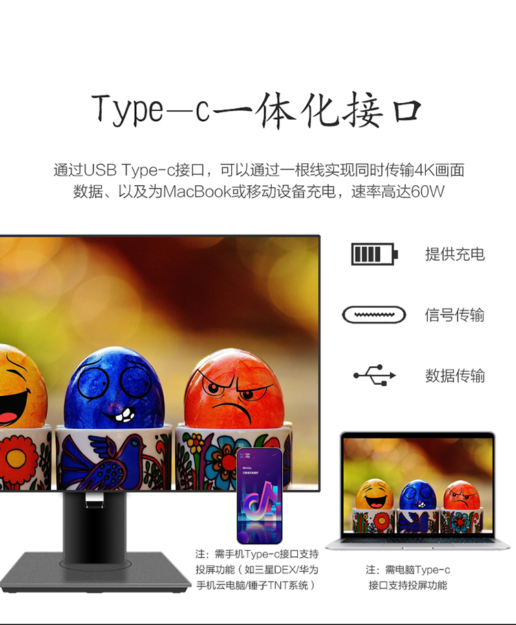 Fshuo凡硕27英寸4K全金属外壳typec显示器65瓦WR5面板重力旋转IPS